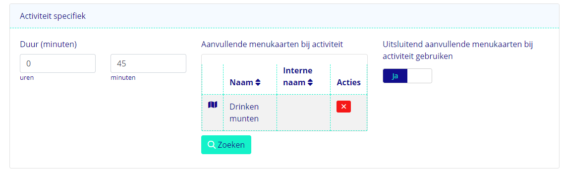 - Klik bij "Aanvullende menukaarten bij activiteit" op "Zoeken";