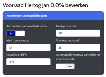 - Zet "Automatisch voorraad bijhouden" aan en geef de huidige voorraad op.