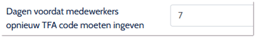 - Op het tabblad Algemeen kun je het aantal dagen opgeven waarna TFA-authenticatie verloopt. Staat er geen vervaltijd ingesteld, dan geldt standaard een vervaltijd van 2 dagen.