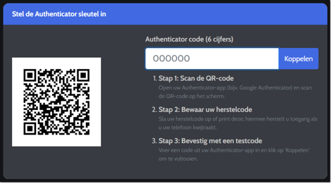 - Scan de QR-code met je Authenticator-app (bijv. Google Authenticator).